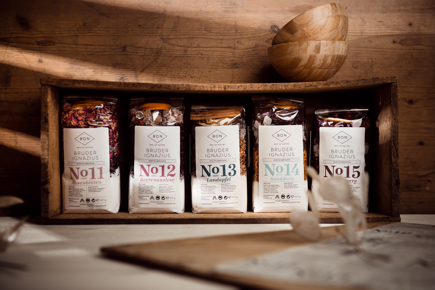 高級的蒸餾酒和混合香料的系列包裝,有阿拉伯數字做直觀的區分,使每一種產品既具有系列包裝的統一性,又有不同的空間。在品牌重塑之后,網站也將焦點轉移到產品上,并將其放置在最優秀的自然精華系列產品范圍。