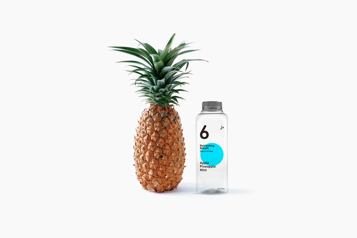 公司的品牌理念是做天然健康的冷榨果汁,這些果汁有助于我們的身體清理的有毒物質,并為我們的生活中獲得更多的精力。所以為了將品牌理念可視化,我們決定為產品做簡單,純凈,有趣的系列包裝。品牌的標志巧妙地將字母j與注冊商標符號結合在一起,使品牌更突出,消費者更安心。產品包裝設計上主要采用文字排版的方式凸顯現代感,用阿拉伯數字和不同的顏色為系列包裝做區分,透明的包裝瓶通過果汁的天然色彩著色,呈現出豐富的色彩層次。