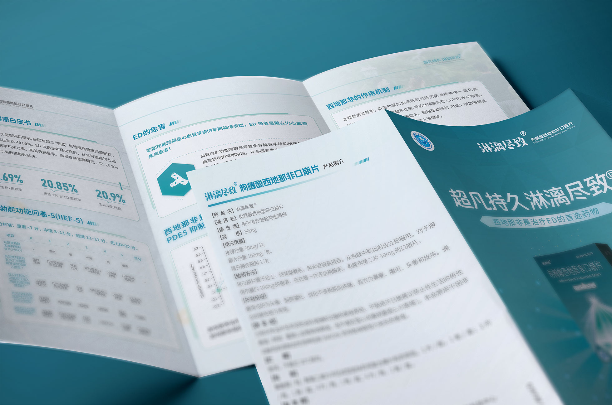 本項目是石特大健康九洲生物醫藥有限公司的深度合作,為其核心產品——西地那非口崩片(產品商標:淋漓盡致)提供從品牌商標到產品包裝的一體化視覺形象策劃與設計。面對該特殊品類的市場同質化與用戶隱私需求,九洲醫藥旨在建立一個兼具品牌辨識度、醫藥專業感、高端品質與用戶關懷的完整品牌形象。石特大健康團隊從品牌戰略出發,承接了“淋漓盡致”商標的字體創意設計,并延伸至終端包裝,實現品牌視覺語言的統一與升華。