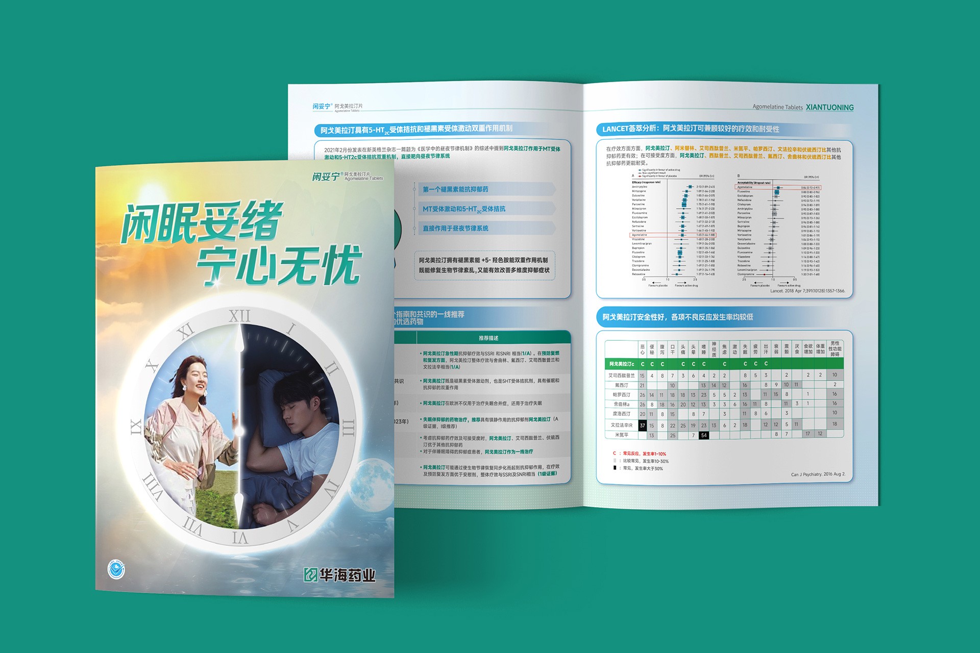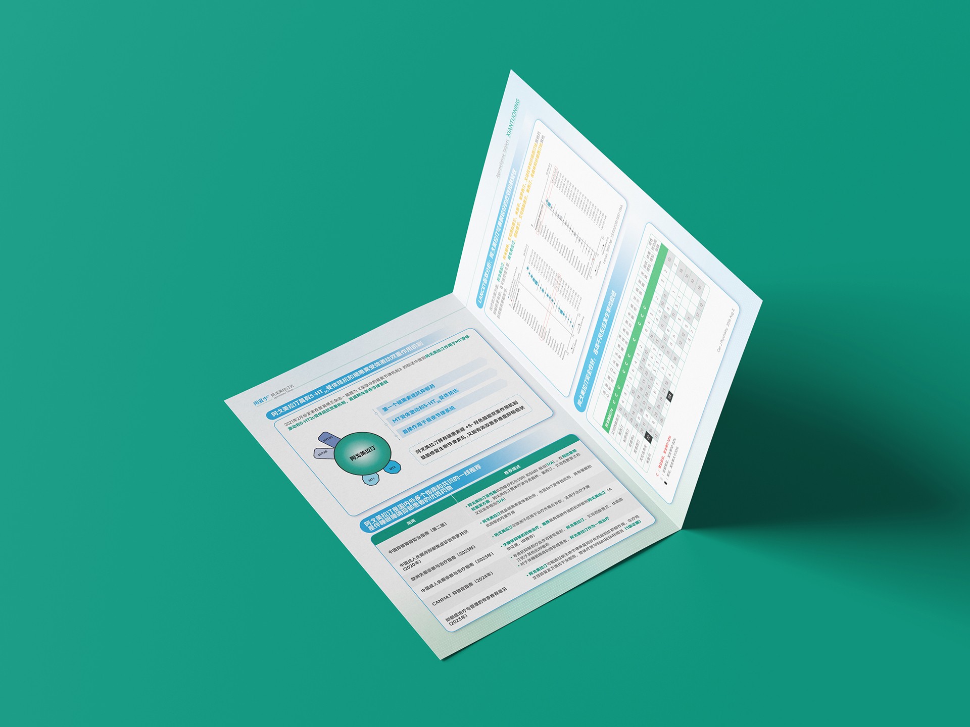 • 嚴謹的視覺調性: 采用嚴謹的版式布局、專業的色譜(如象征科技與信任的藍色系)和高質量的醫學影像,整體營造出可信賴的學術氛圍,與華海藥業的品牌實力相得益彰。