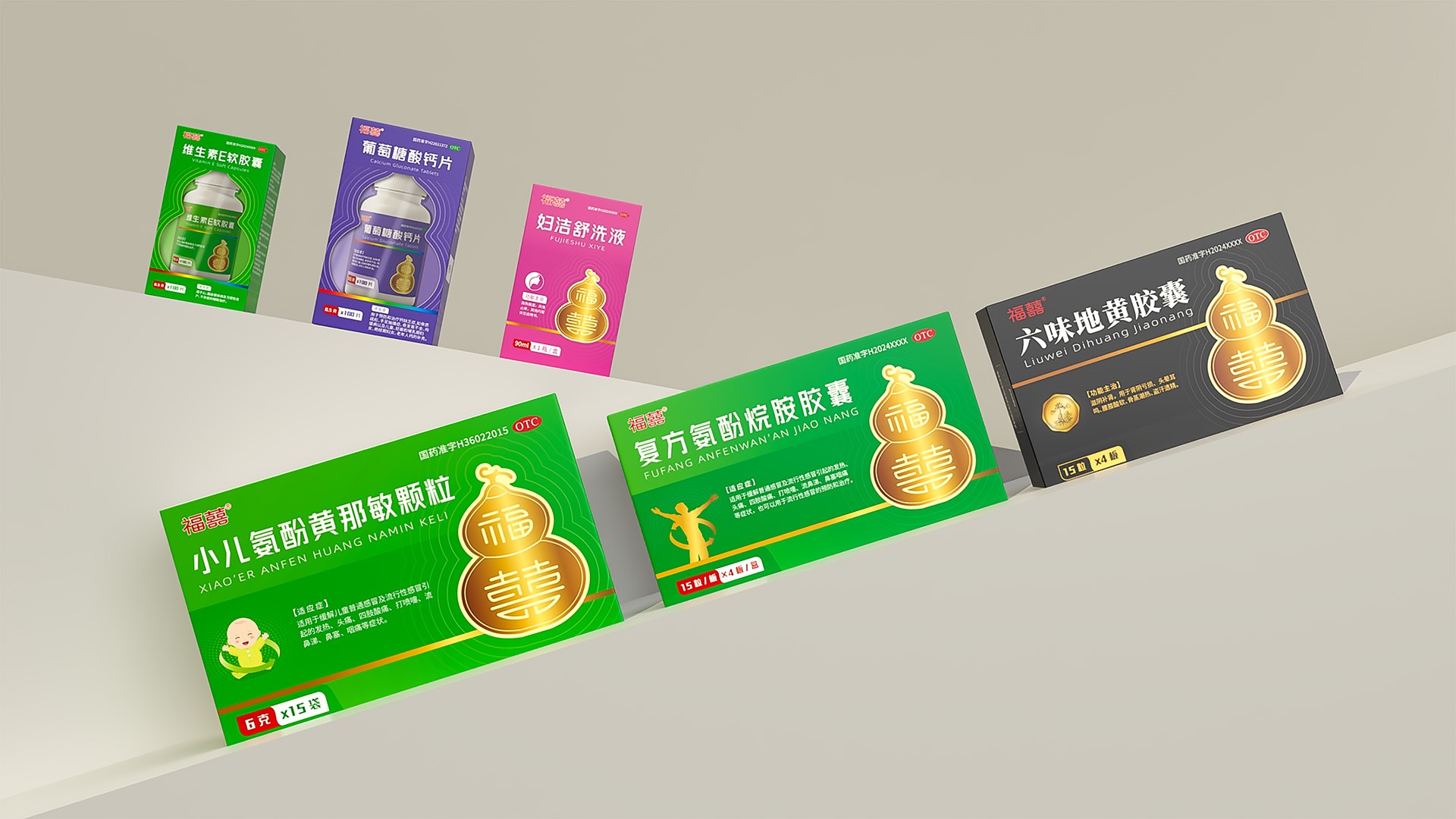 本項目是石特大健康為江蘇福囍醫(yī)藥科技有限公司提供的品牌視覺體系落地應(yīng)用案例。在前期為其完成從“福囍”LOGO到“葫蘆”超級符號,再到整套品牌VI系統(tǒng)的構(gòu)建后,我們進一步將這一全新的品牌基因,深度應(yīng)用于其旗下六味地黃膠囊、維生素E軟膠囊、葡萄糖酸鈣片、小兒氨酚黃那敏顆粒、婦潔舒洗液等涵蓋不同品類、不同劑型的核心產(chǎn)品包裝上。我們的目標(biāo)是將統(tǒng)一的品牌戰(zhàn)略轉(zhuǎn)化為觸手可及的市場競爭力,確保每一款產(chǎn)品在貨架上都能清晰傳遞“福囍”品牌的溫暖、吉祥與專業(yè)感,實現(xiàn)品牌形象與產(chǎn)品銷量的同步提升。
